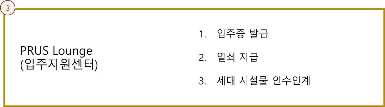 세번째는 입주증 발급과 열쇠 지급 그리고 세대 시설물 인수인계입니다.