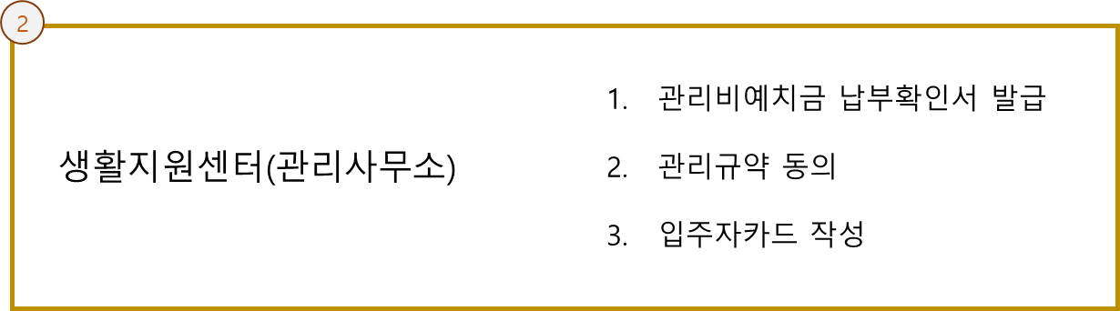 생활지원센터에서는 관리비예치금을 납부하게되는데요. 관리비예치금은 공동주택의 공용부분의 관리 및 운영 등에 필요한 경비를 말한다해요. 관리비예치금은 주택에 대한 소유권이 상시되기 전까지 반환되지 않아, 향후 매도를 하게 될 경우, 매도인은 매수인에게 받고 나가야 한다고 합니다. 얼핏 장기수선충당금과 비슷한 개념일거 같기도 하네요. 단지 소유권을 매개로 이루어지는 금액은 관리비예치금, 거주권을 매개로 이루어지는 금액은 장기수선충당금.. 이 아닐까요? 이렇게 이해하려하니 조금 편해지는 것도 사실이고요.