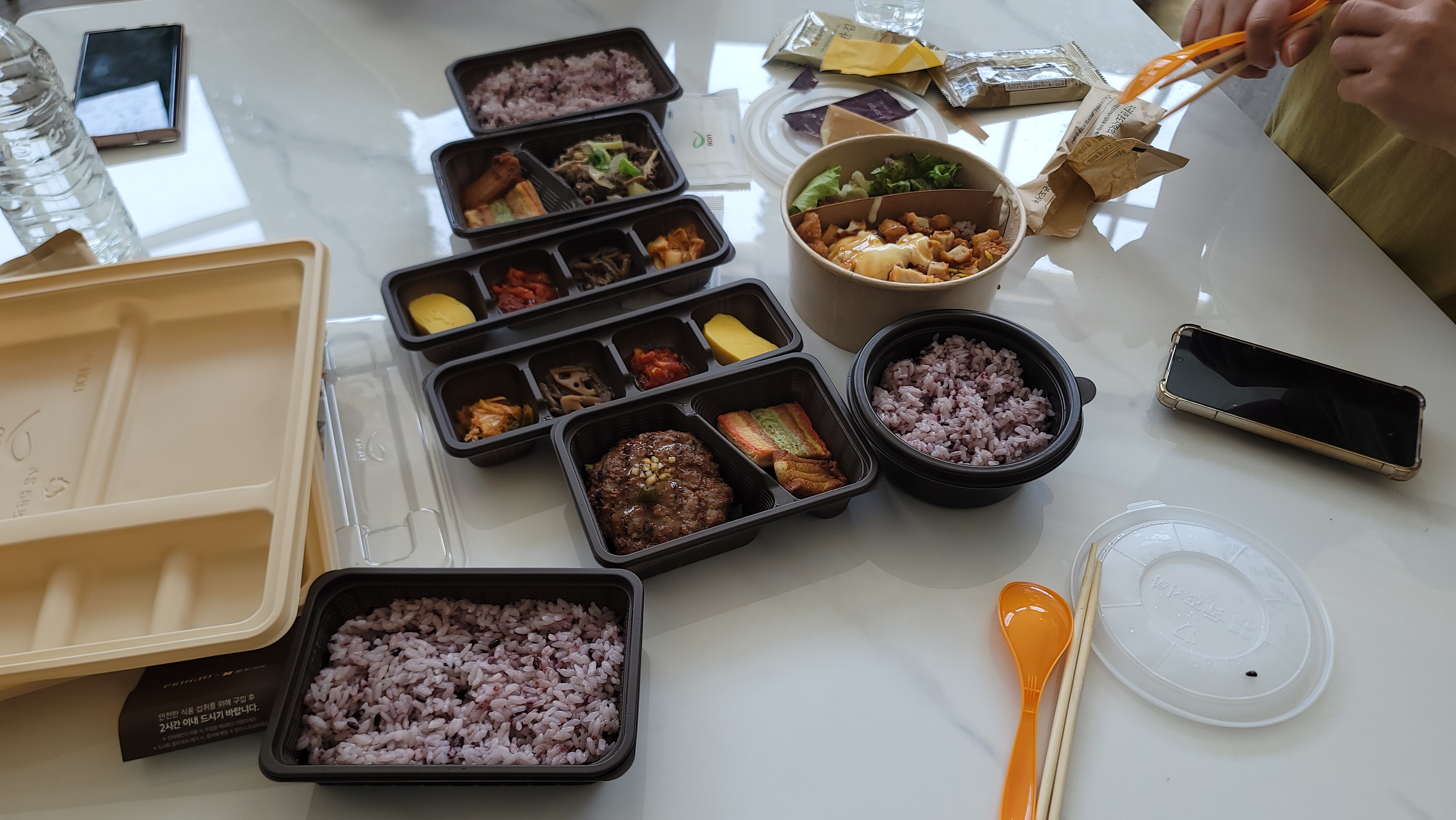짜잔!~ 웰컴밀~! 아침부터 바쁘게 움직였더니, 너무 허기졌는데 이사 3일전에 신청한 밀키트 입니다. 생각보다 양이 많아서 깜짝 놀랐어요. 정식 2개, 치킨마요 1개 그리고 여분의 밥 한그릇 이렇게 구성되어 있는데 시장이 만찬이라고 매우 맛있게 잘 먹어서 오후 일정을 소화해 낼 수 있었던게 아닐까 해요.