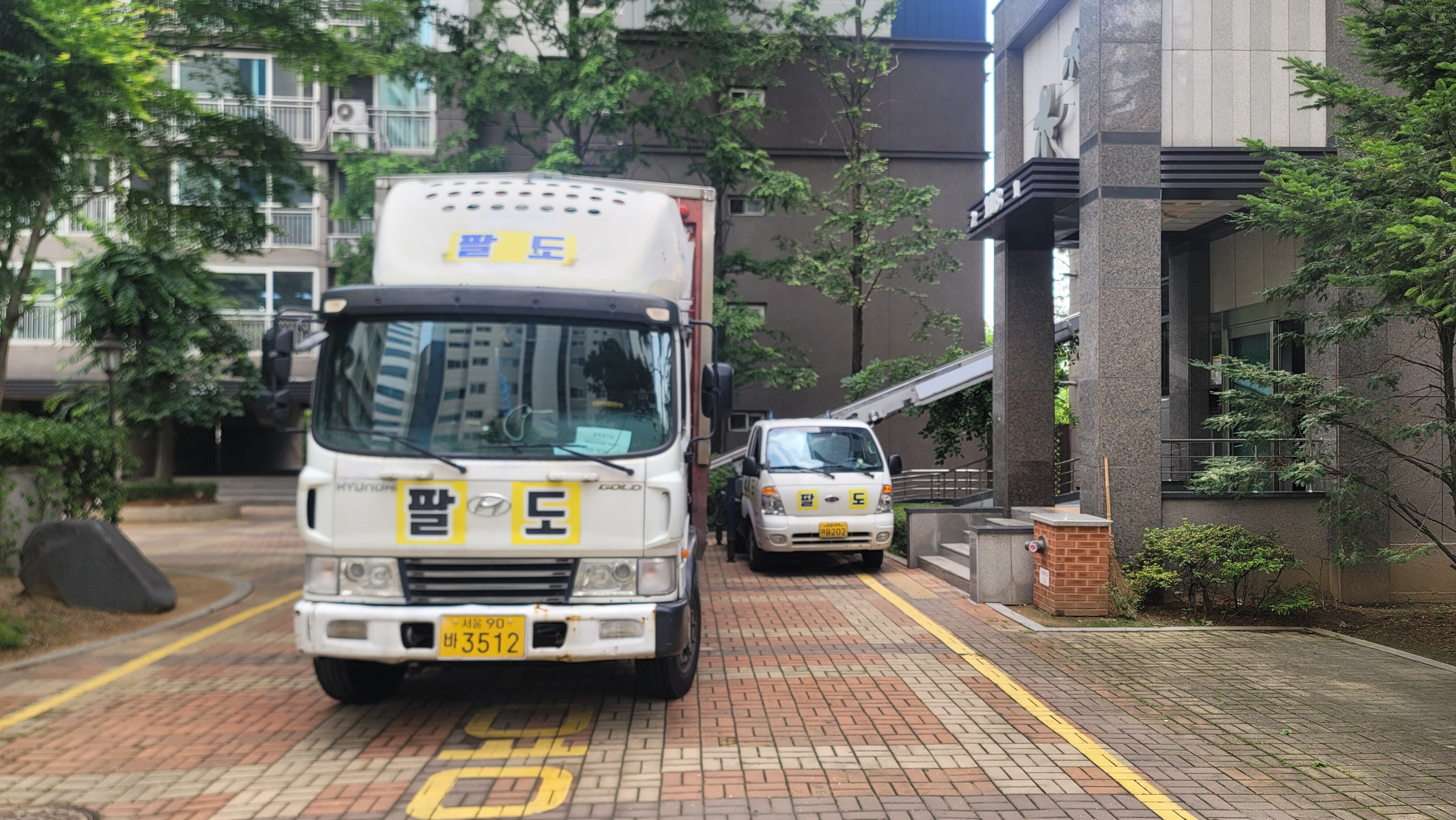 기존 살던 집에서 퇴거하는 모습입니다. 저희는 팔도라는 이사짐 업체를 선택해서 진행했는데요. 팔도라는 회사는 외주(일용직)를 최대한 적은 인원으로 구성하려고 하는 업체라 했던 것으로 기억됩니다. 실제로 팔도 정직원 소속의 직원들로 구성된 남성3분과 여성1분이 진행해 주셨어요. 그래서 그런지 책임감도 있어 보이셨고, 열심히 짐을 옮겨 주시려고 하셨던 부분도 눈에 보였고요. 다만 우리 집의 가구는 별로 없어서 생각보다 저렴하게 책정된 금액으로 이사를 계약했는데요, 나중에 팀장님 말을 들어보니 잔짐들이 너무 많아 올 해 들어 역대급을 힘들었다고 하셨어요. ㅠㅠ 한편으로 미안하기도 했RH요. 감사하기도 했습니다. 우리가 봐도 잔짐이 너무 많았거든요. ㅎㅎ