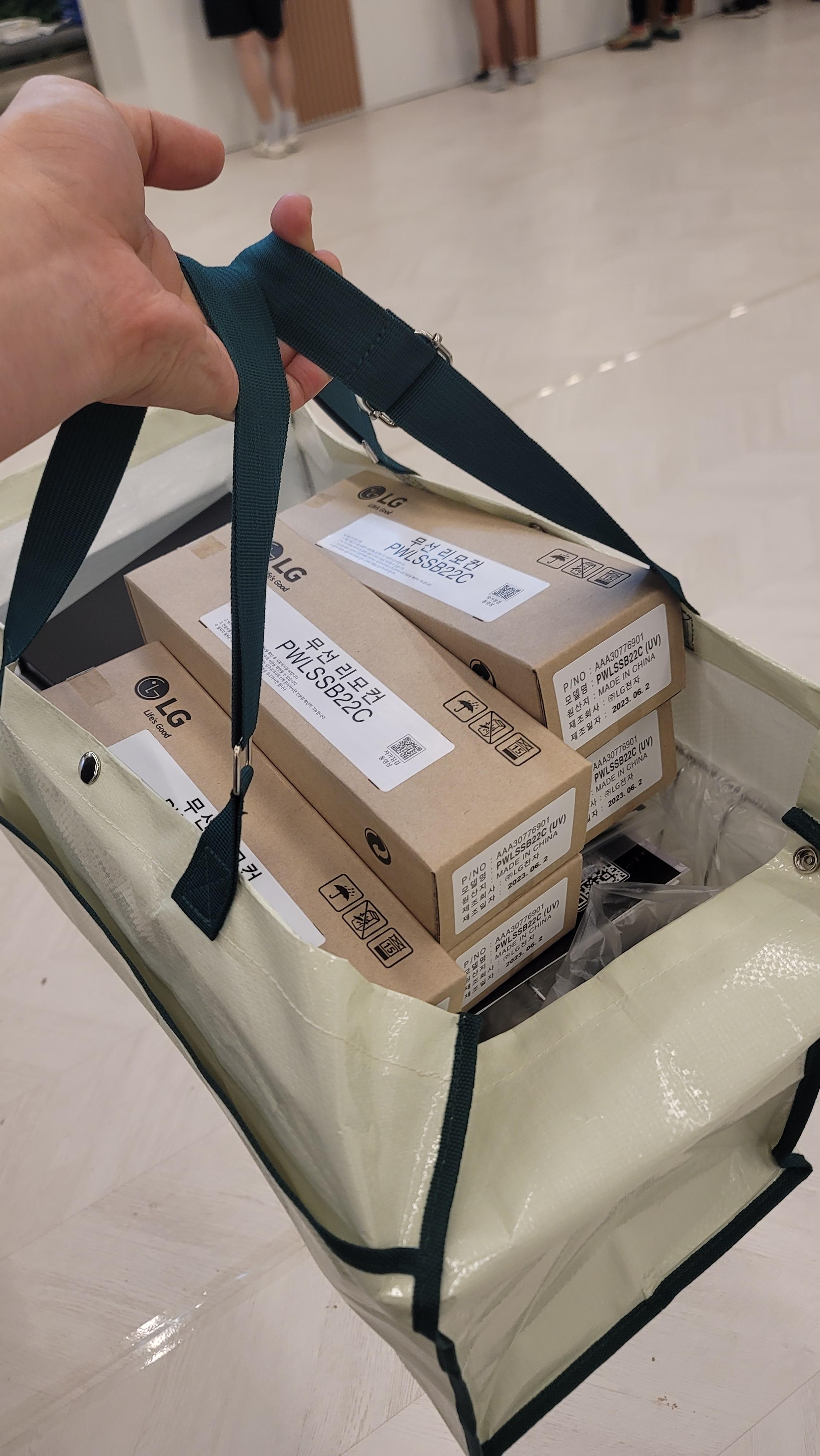 입주증을 발급 받고, 입주증으로 가지고 옆 데스크로 이동하면 위 사진과 같이 선물 보따리를 받을 수 있어요. 여기에는 현관을 출입할 수 있는 카드키, 음식물 쓰레기에서 사용할 수 있는 충전식 카드(로카), 에어컨 리모컨 등등 여러가지 물품이 들어가 있어요, 근데 중요한건 실제로 받아 봤을때 그 내용물 보다는 뿌듯함? 이 더 큰거 같아요. 정말 내 집이 생기는 구나 라는 느낌이 더욱더 강하고 기분 나쁘지 않은 느낌? 이였다고 할 수 있을거 같습니다.