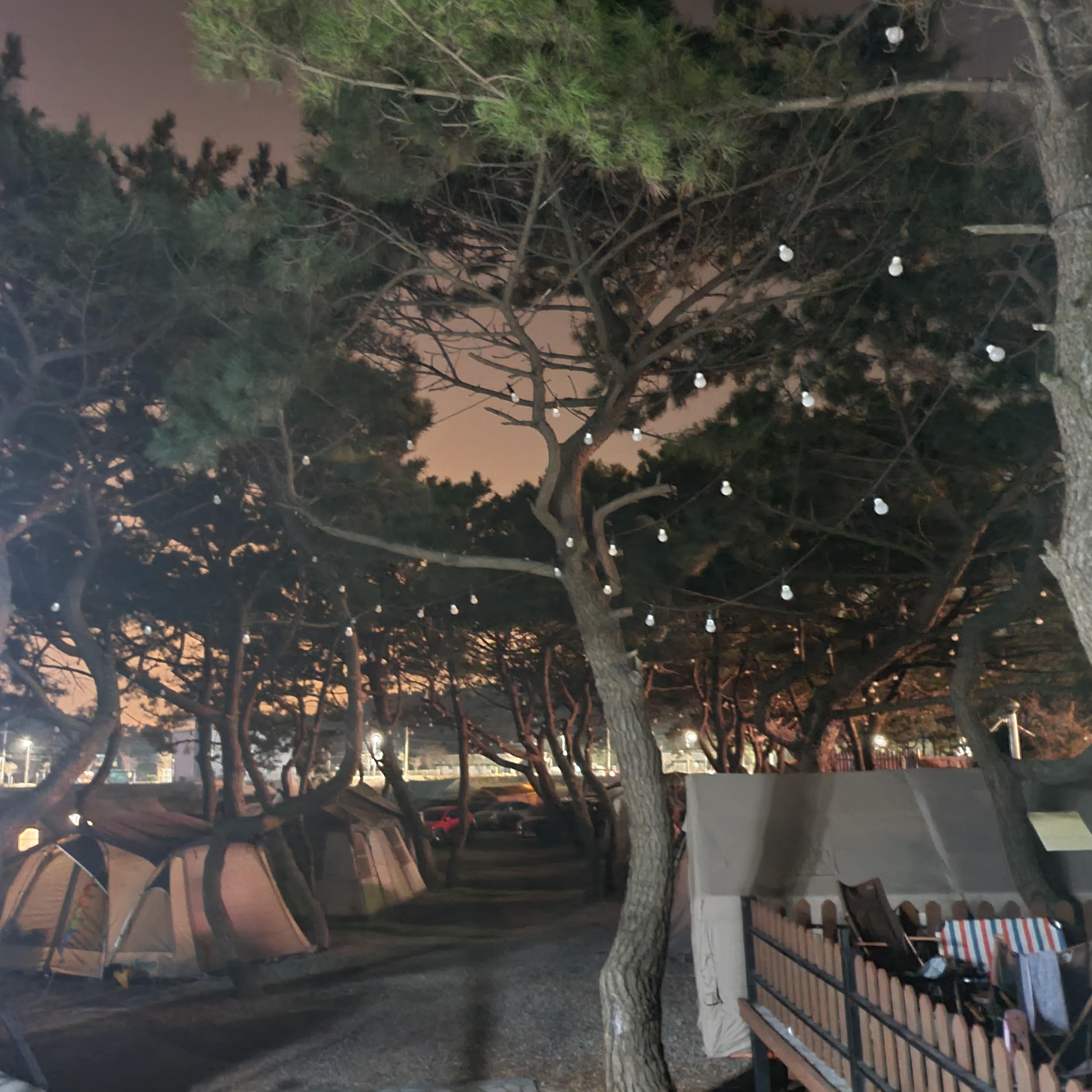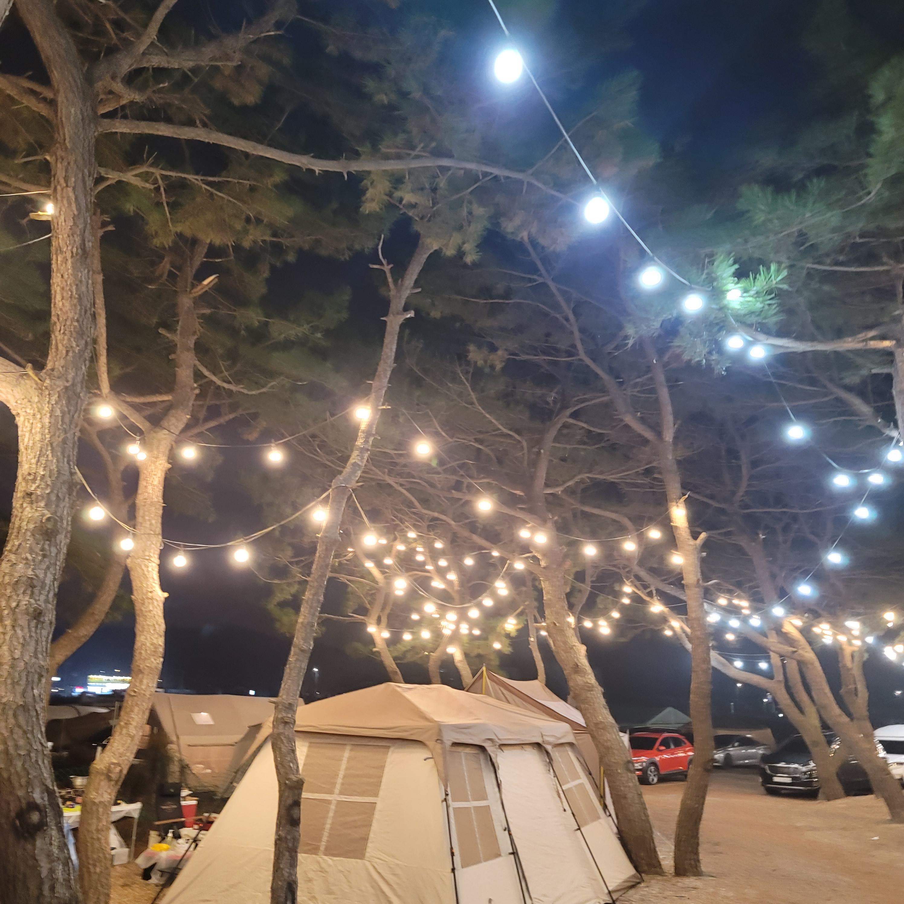 각 캠퍼들이 달아 놓은 텐트 앞 전등 또한 모두 소등하더라고요.