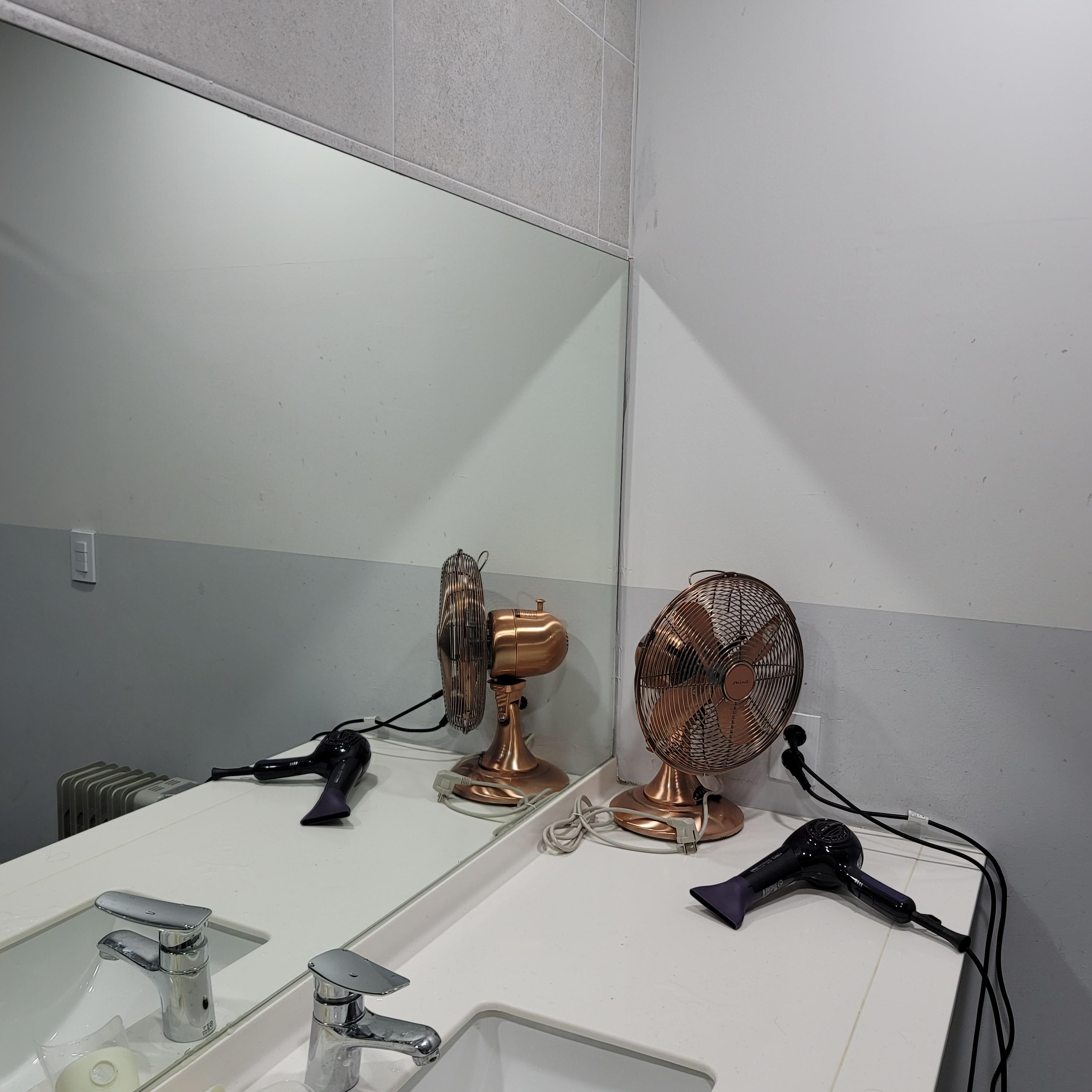 샤워실은 작았지만 세명이 동시에 따뜻하게 이용할 수 있었어요.