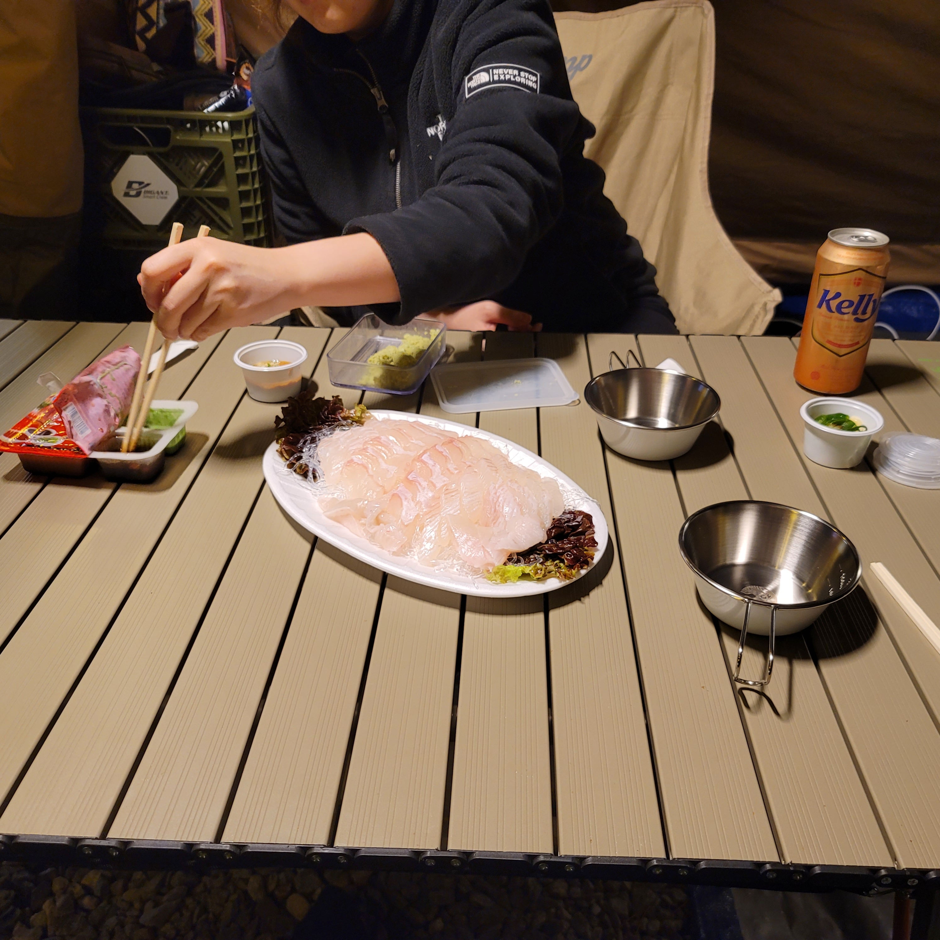 캠핑장에 회가 어울리나 싶다가도,
