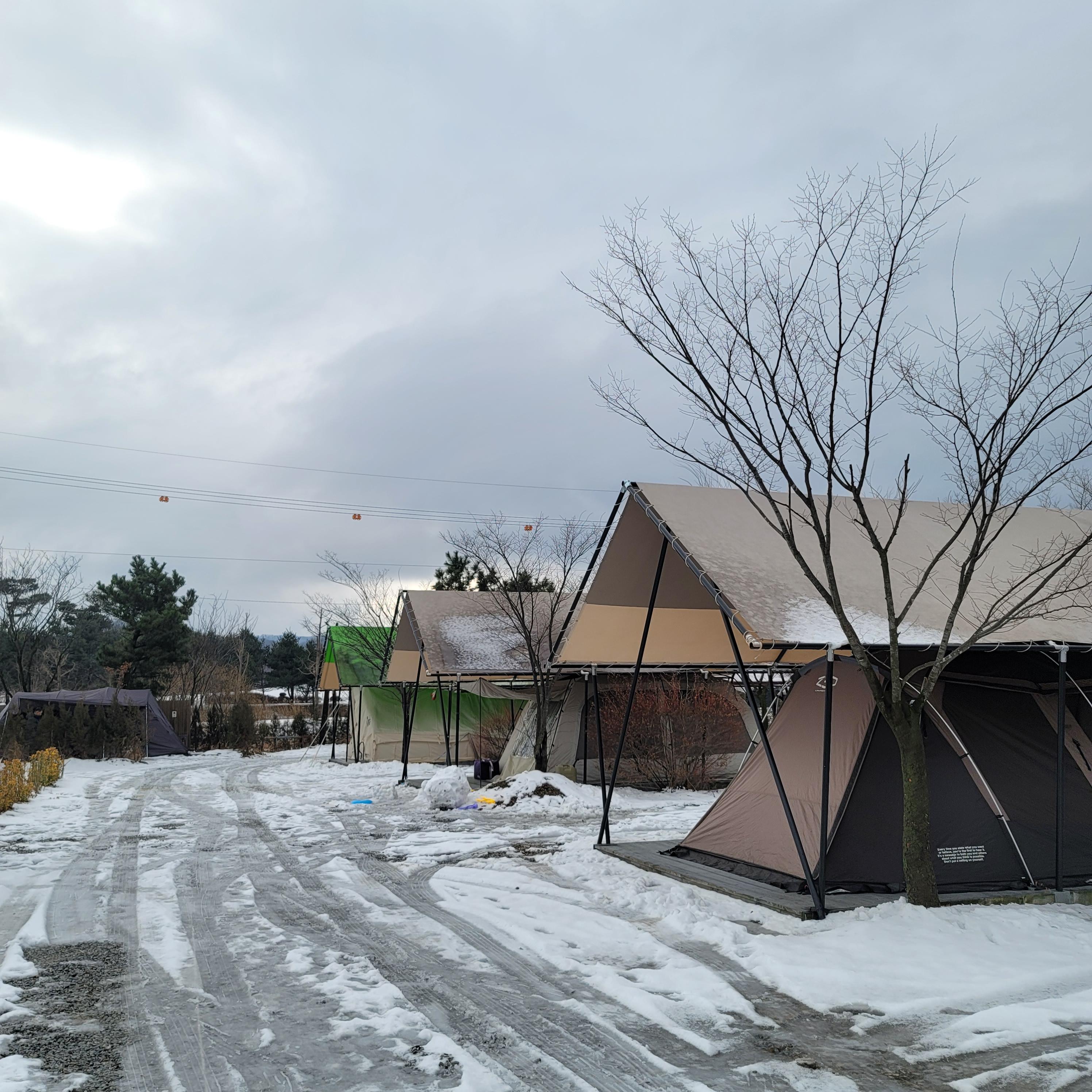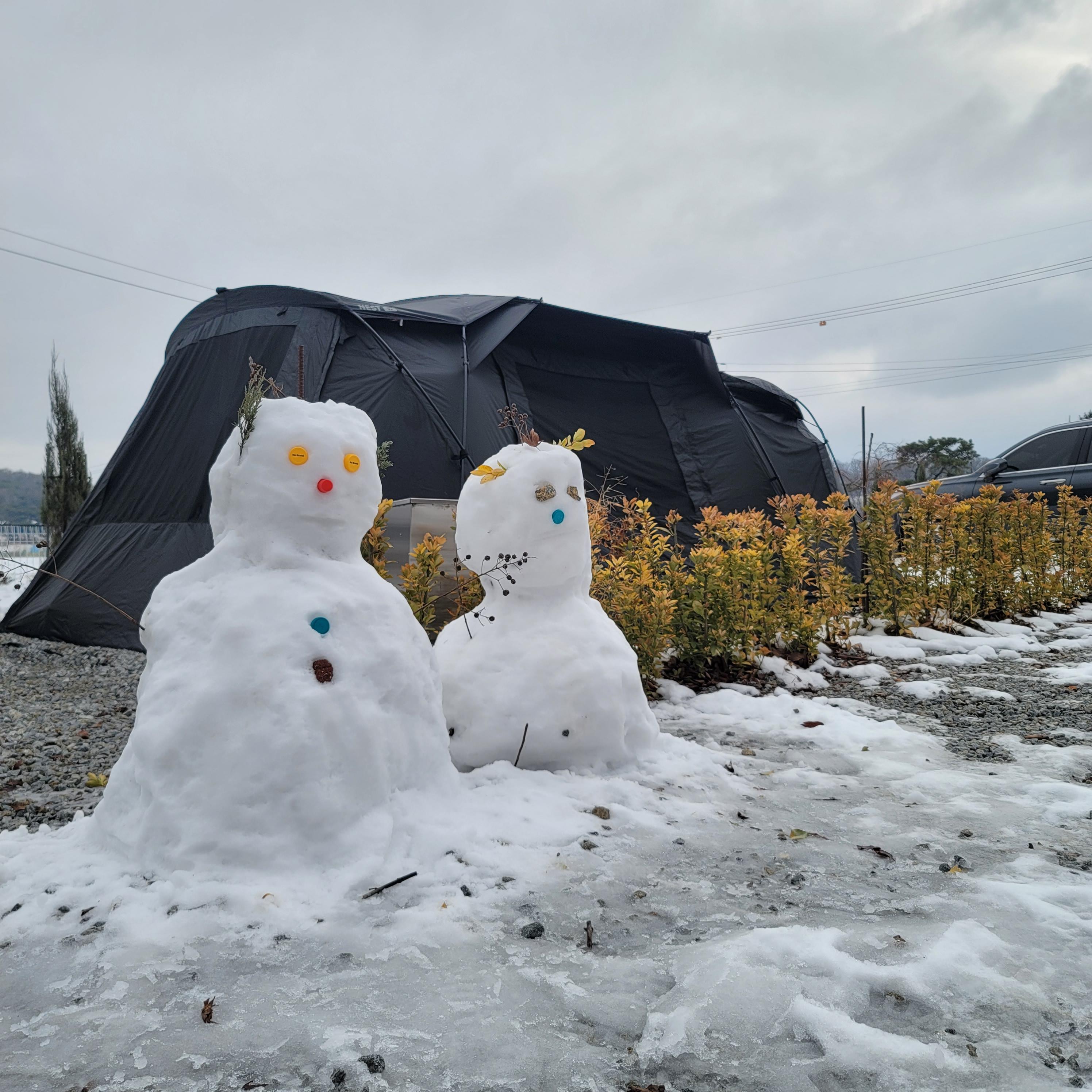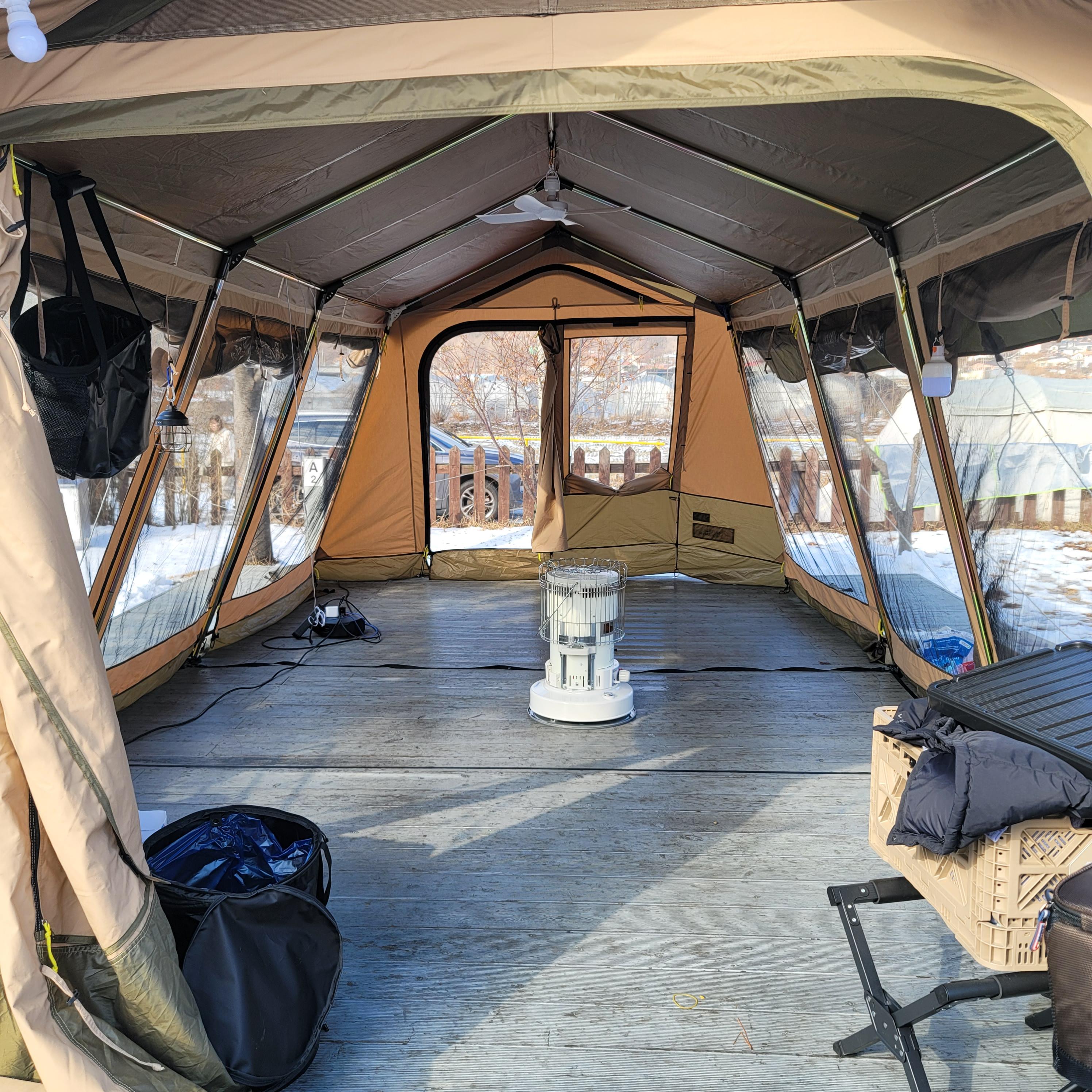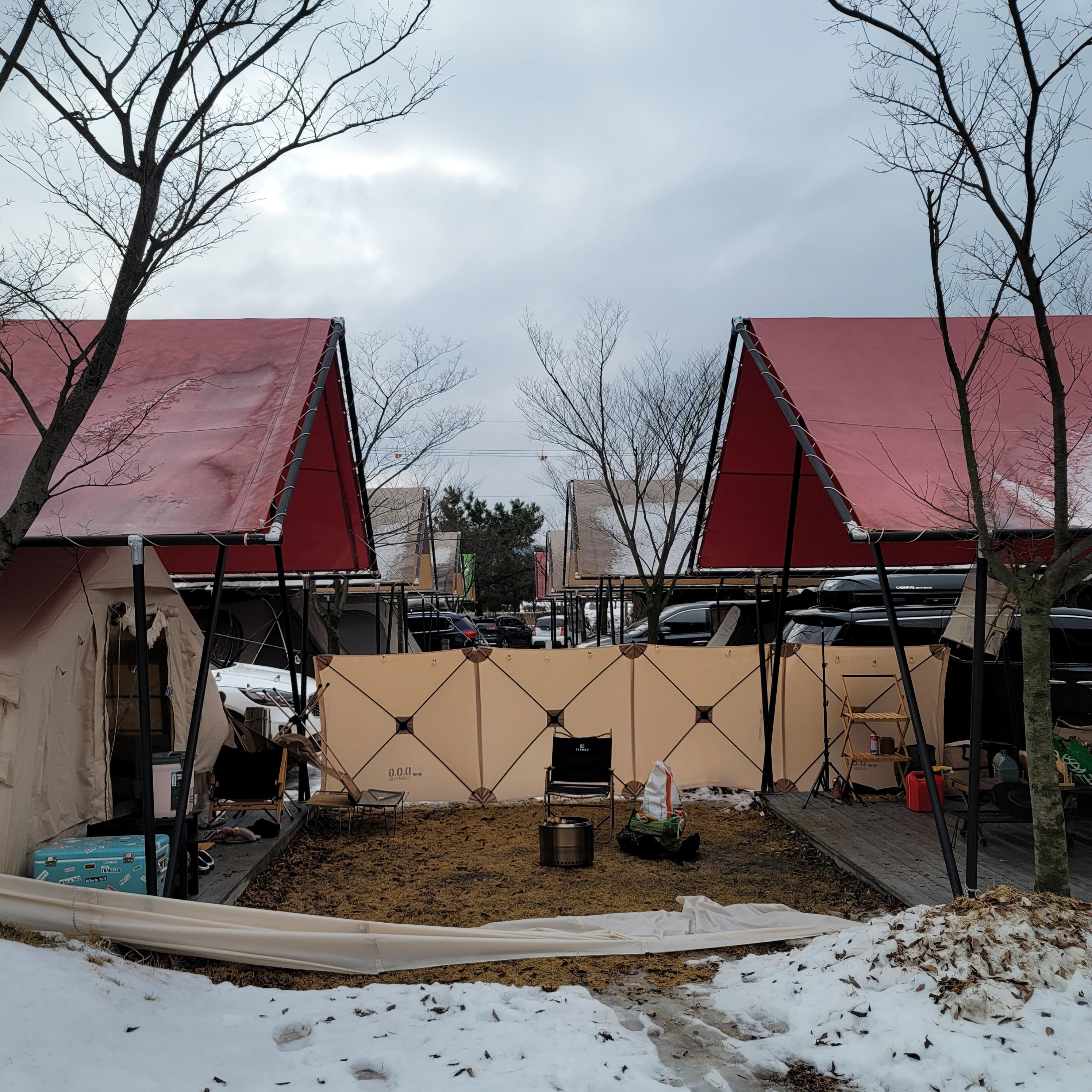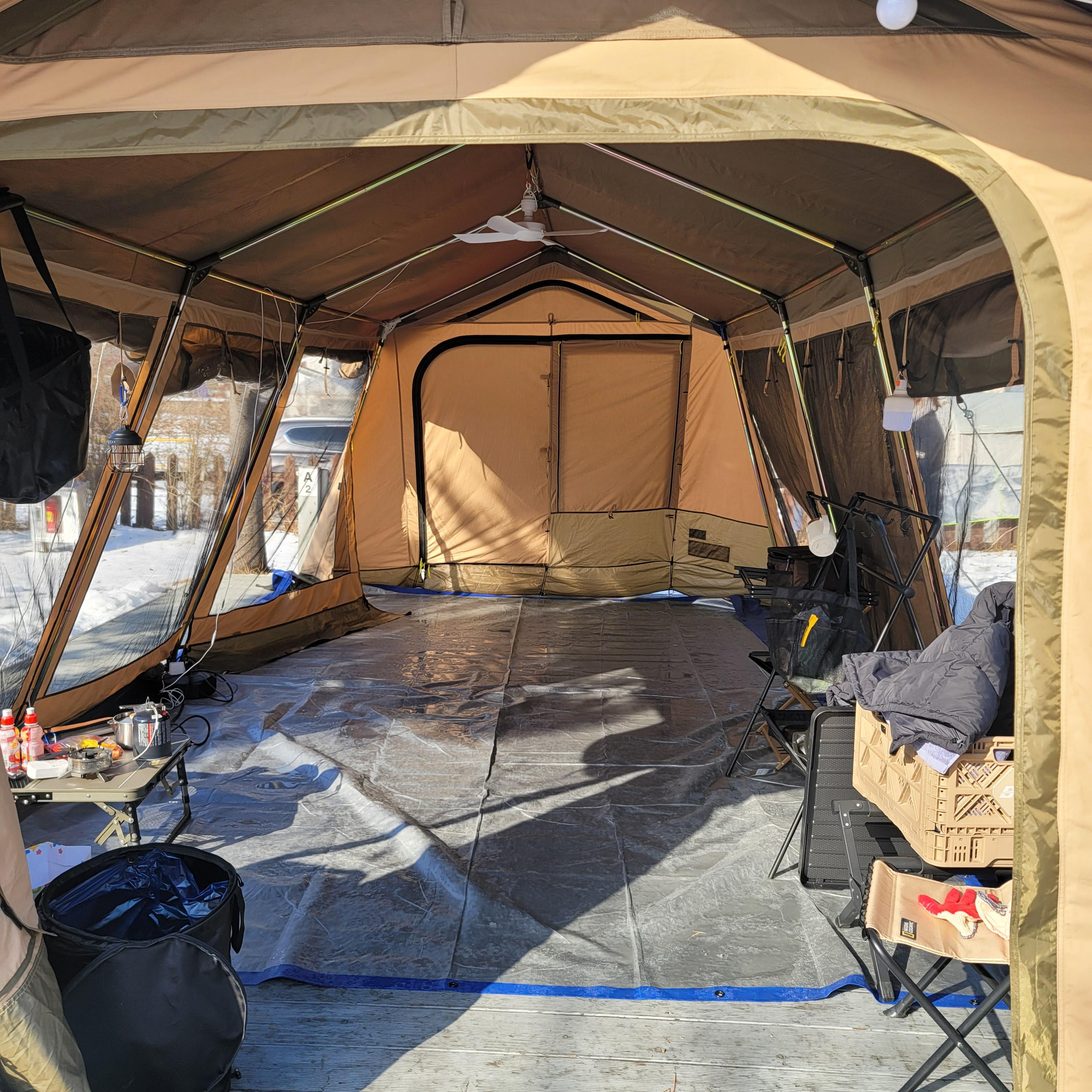 첫날에 펑펑 눈이 왔음에도 불구하고, 바닥 공사를 소홀하게 했더니 새벽 내내 비가 이너텐트 안으로 들어왔어요ㅠ
