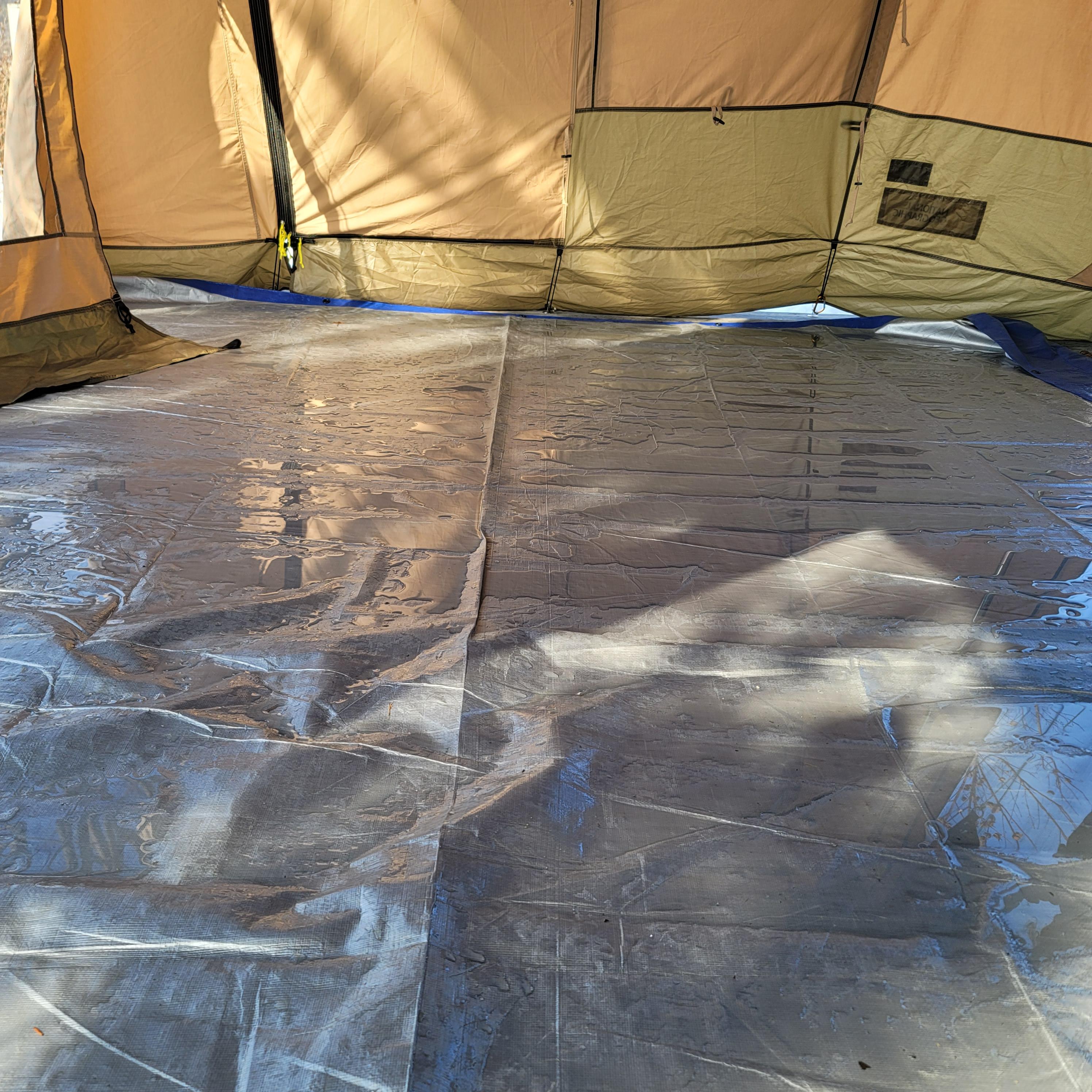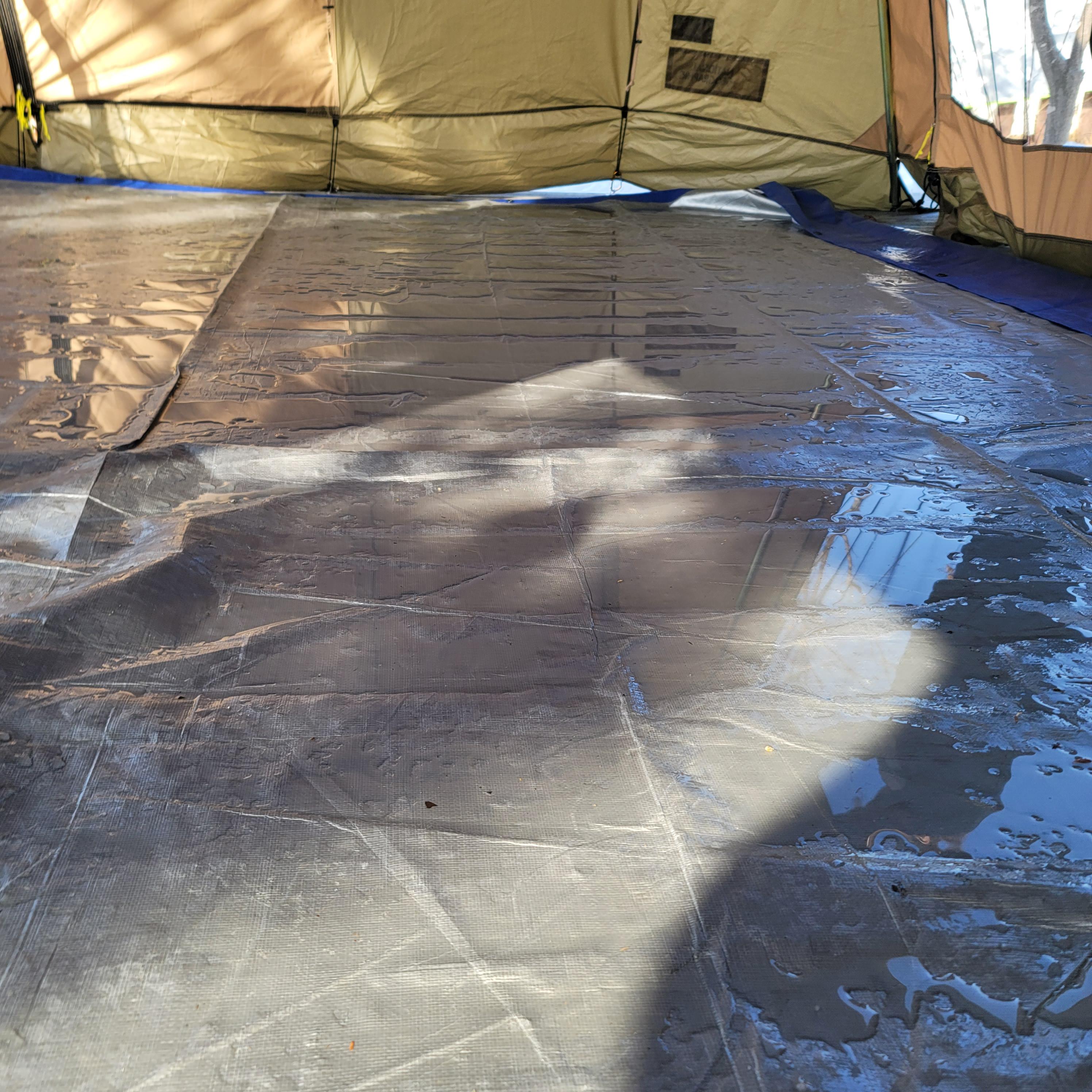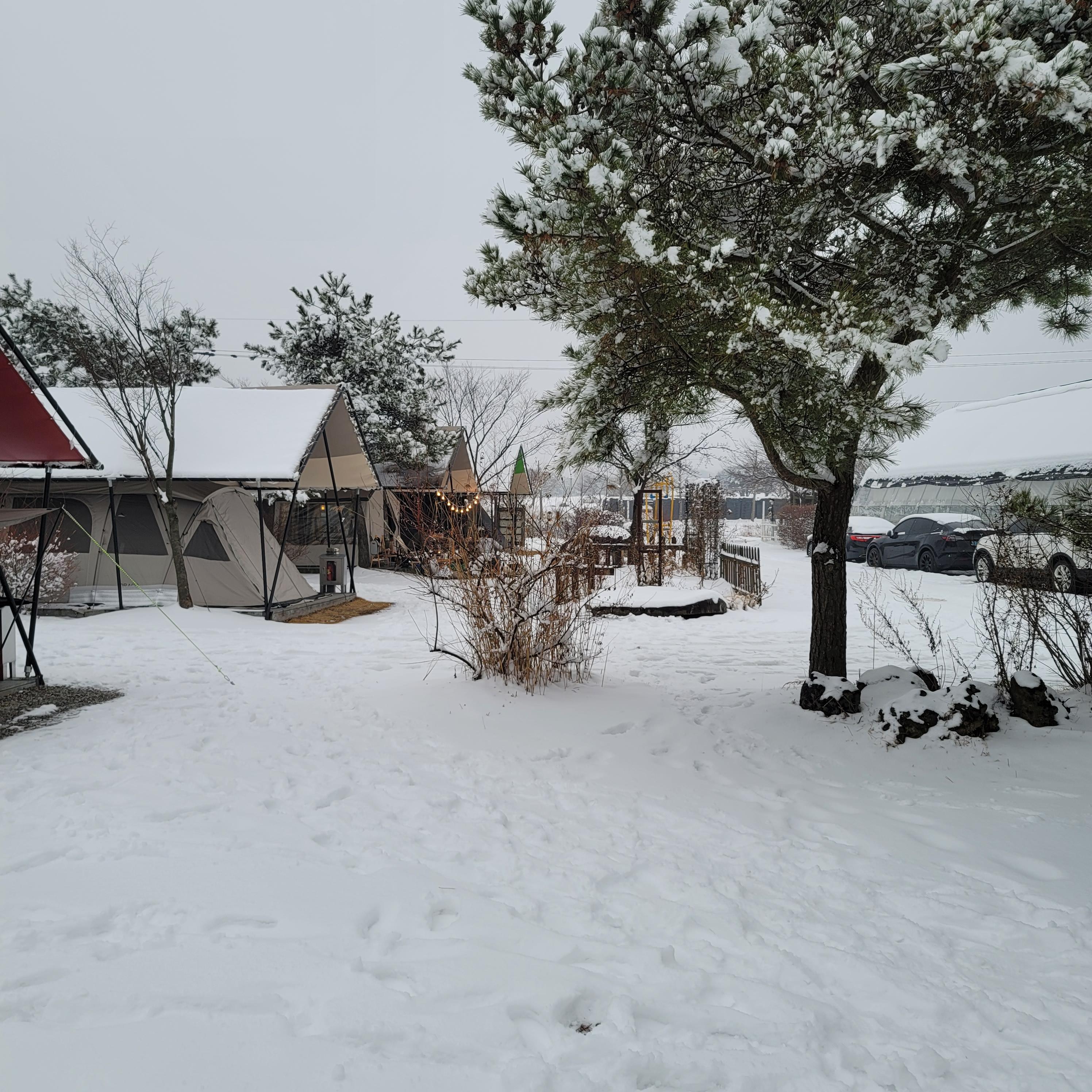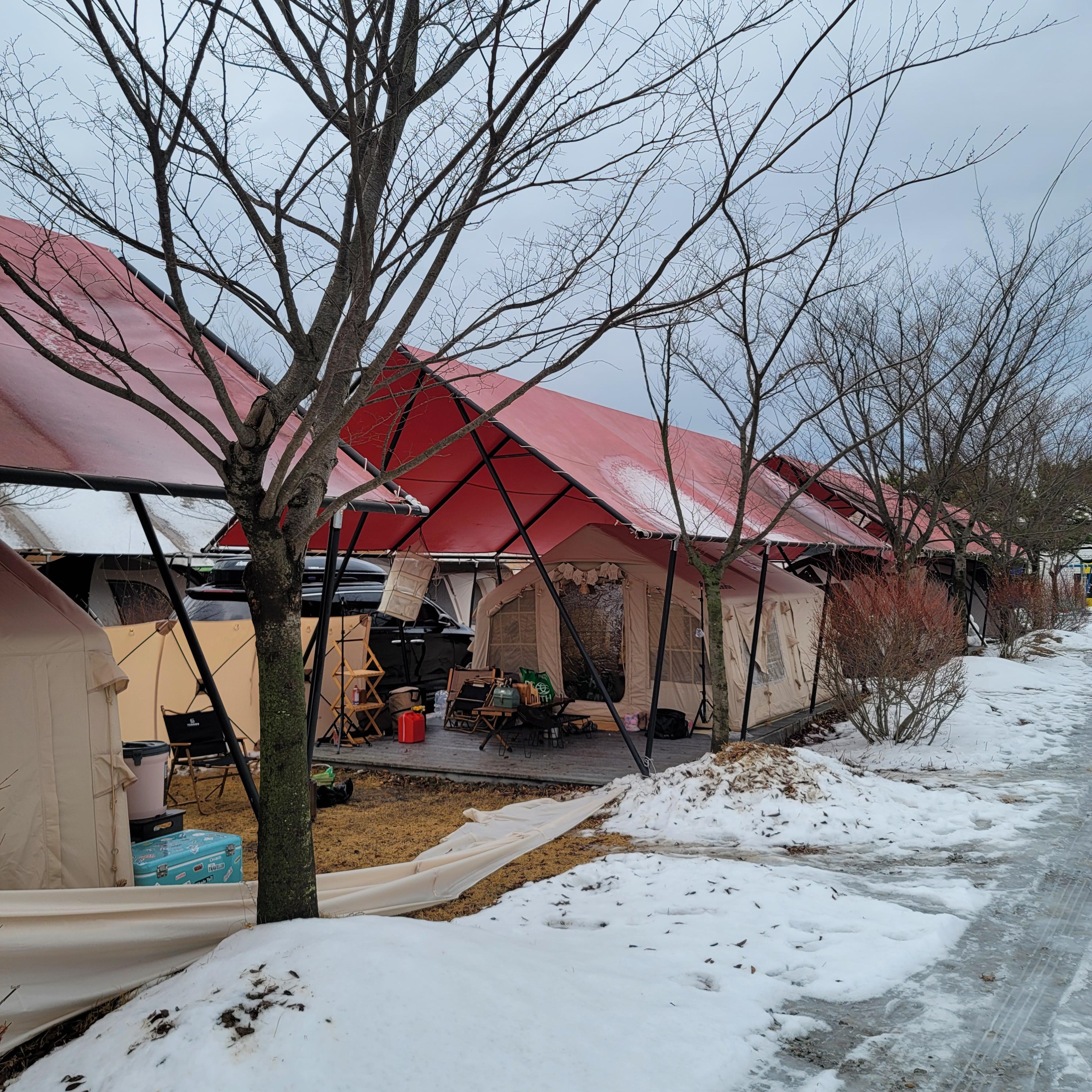 첫날에 펑펑 눈이 왔음에도 불구하고, 바닥 공사를 소홀하게 했더니 새벽 내내 비가 이너텐트 안으로 들어왔어요ㅠ