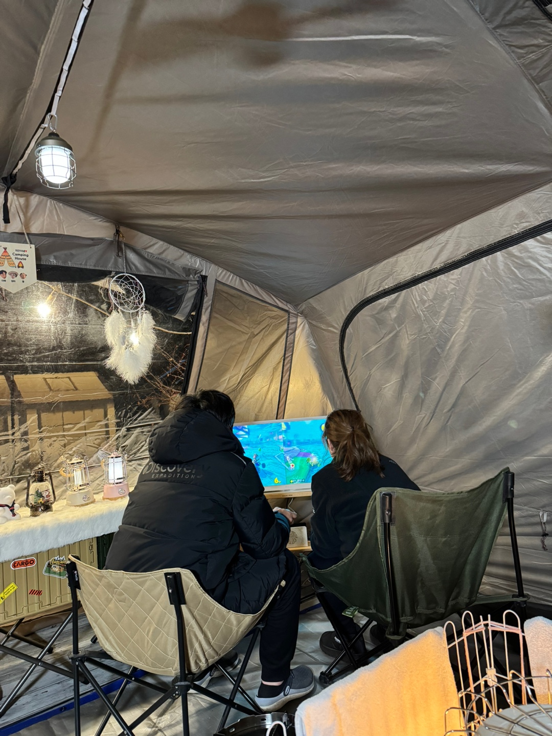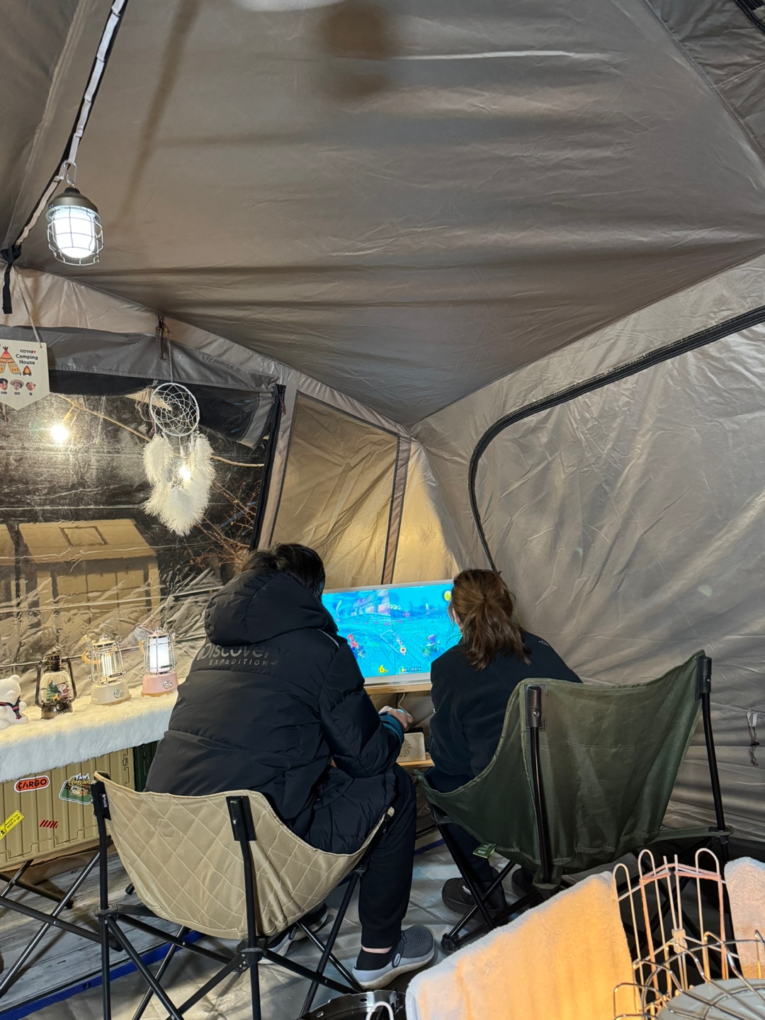 함께 캠핑을 한 가족이 룸앤티비를 가져왔는데, 거기에 닌텐도를 연결해서 ..