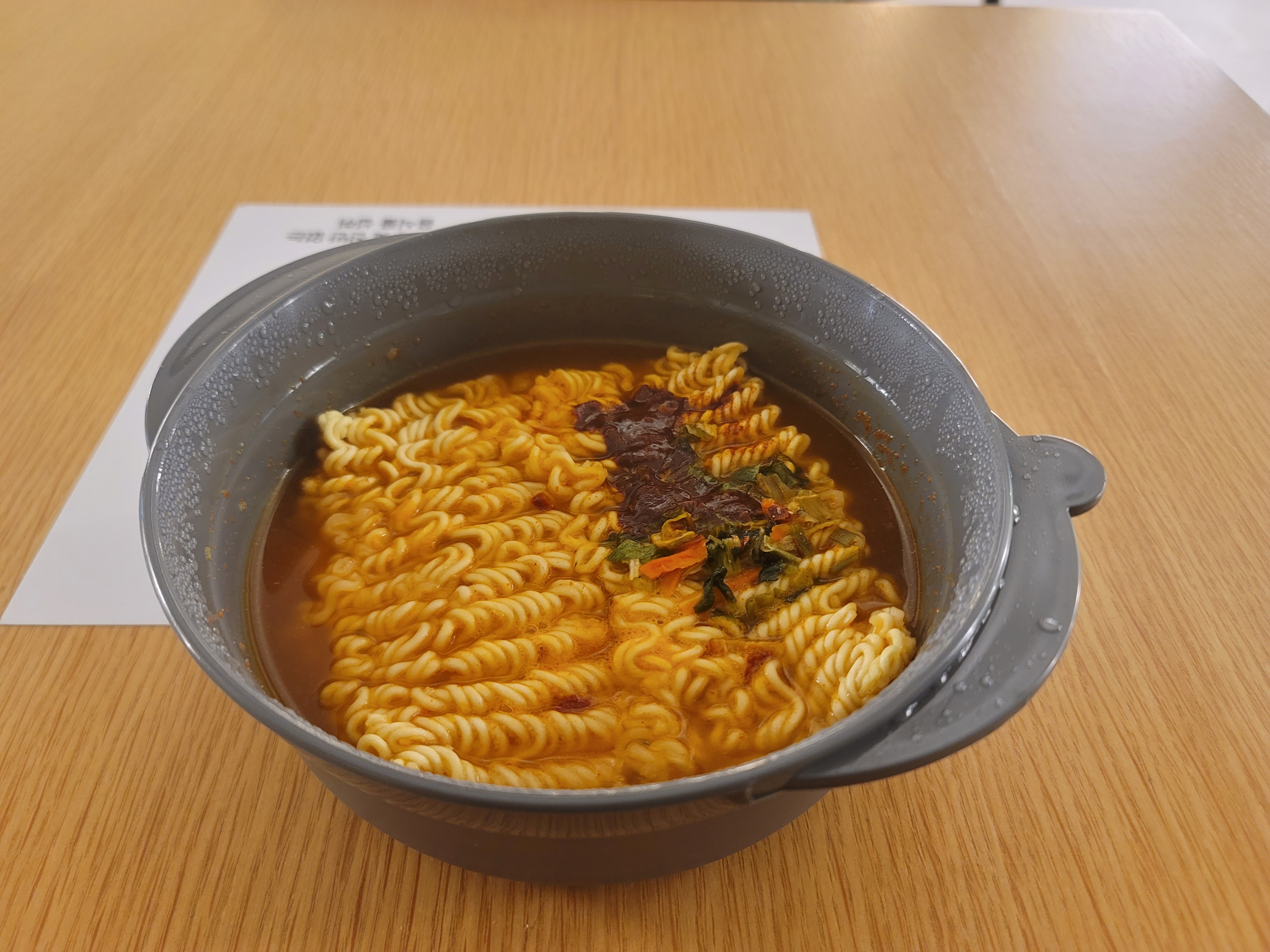 라면 물이 전자레인지로 돌려서 뜨거워서 그런지, 뭉쳐있는 스프가 생각보다 잘 풀어졌어요~