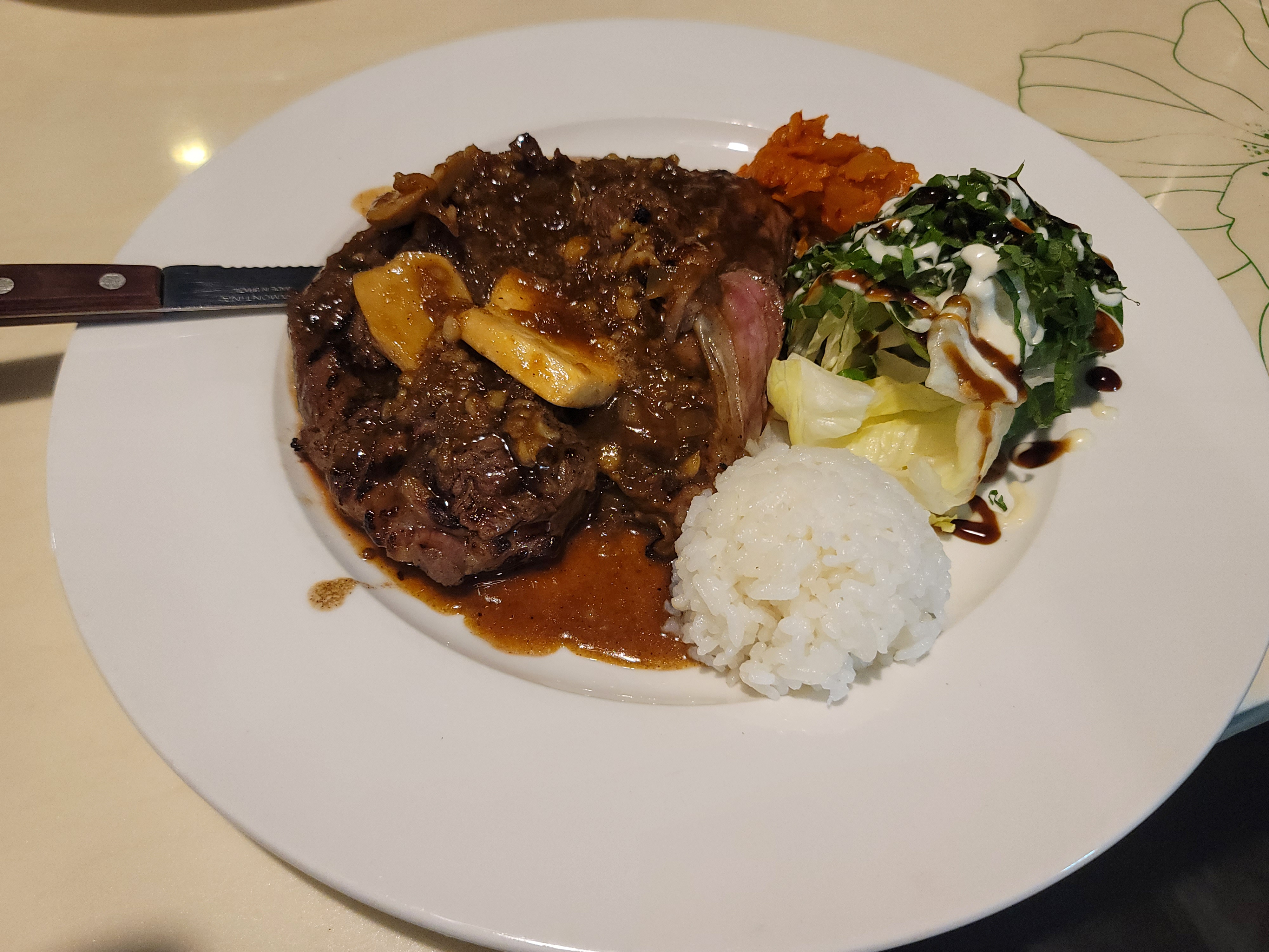 다른 스테이크와는 다르게 한도 한숟가락 얹어 나왔어요.ㅋㅋㅋ
