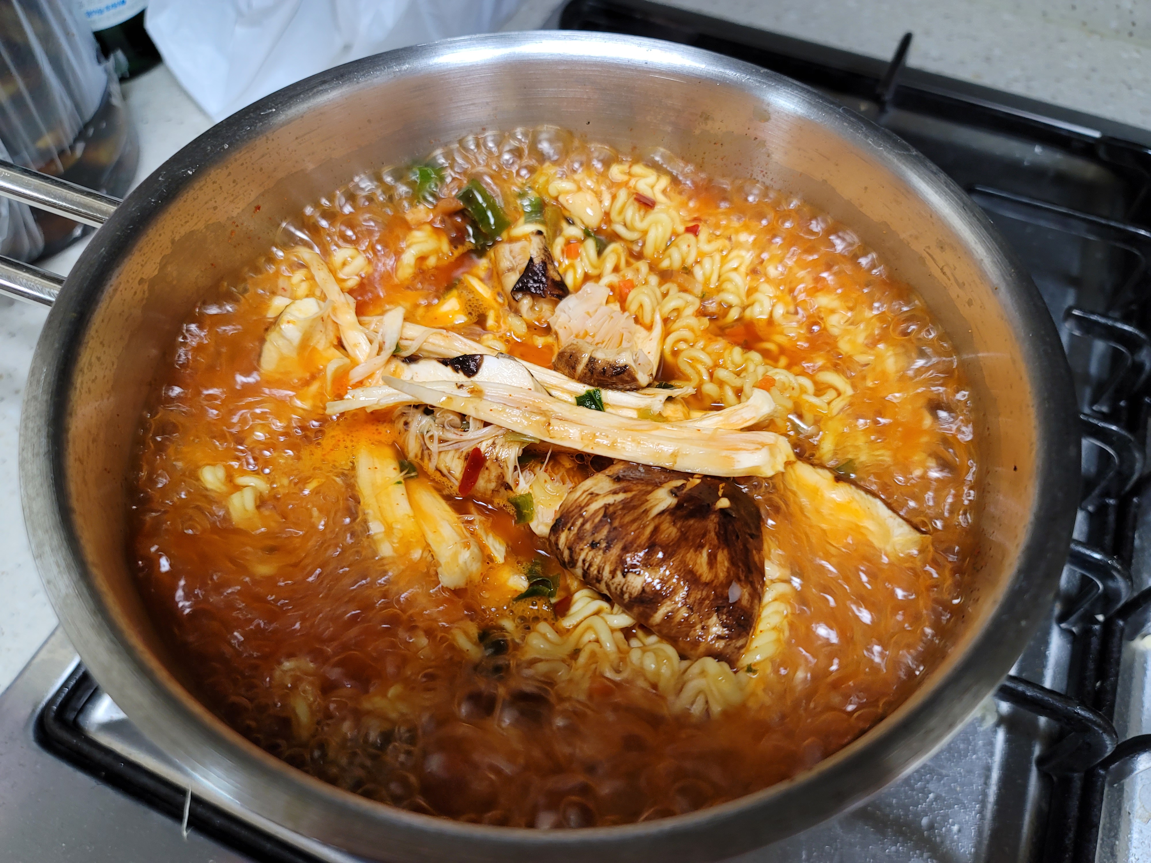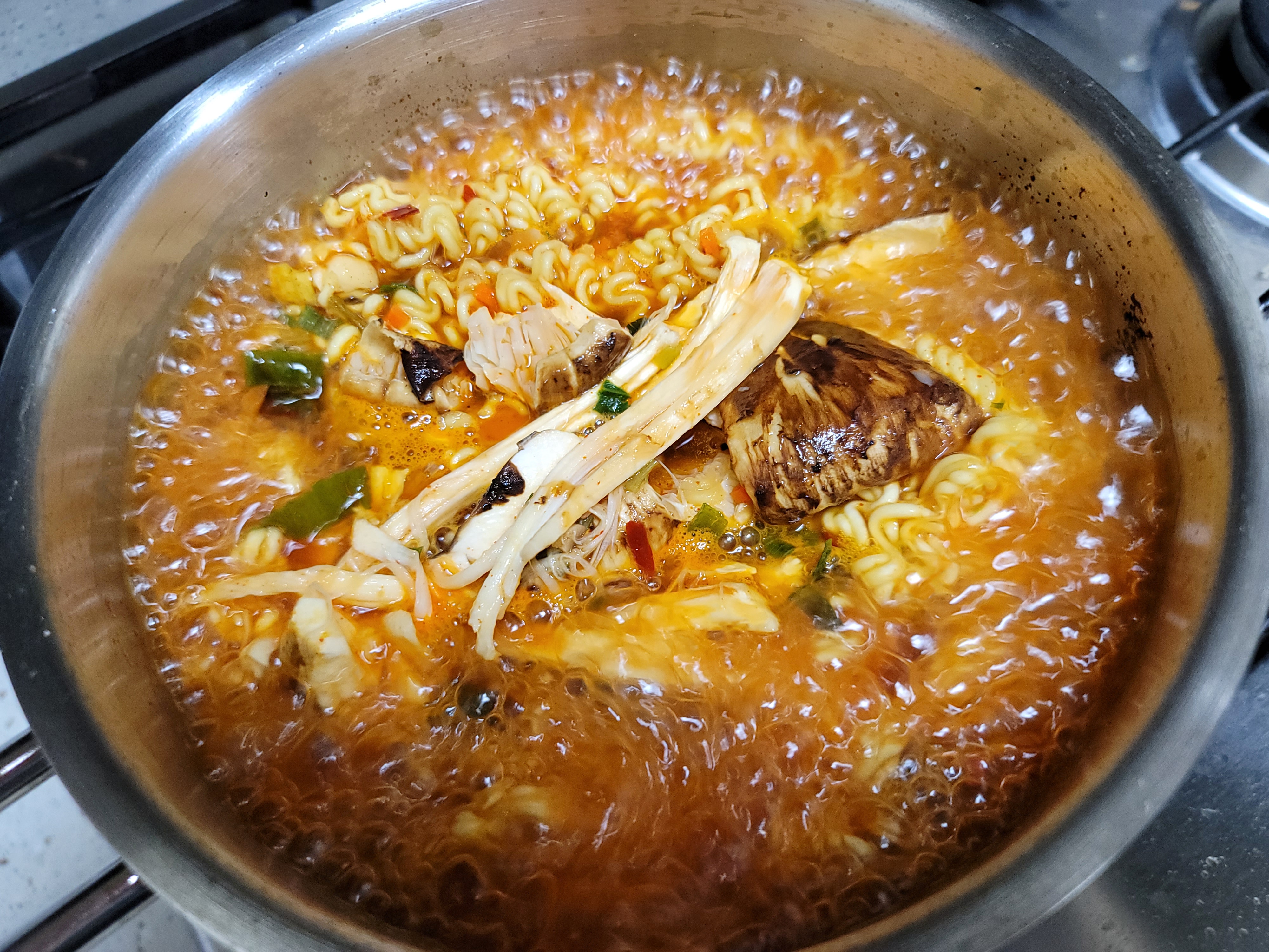 (참고로 송이버섯.. 비싸다.. 비싼 재료... 비싼 재료는 라면과 함께... 라면은 비싼 재료와 함께 요리가 된다..)