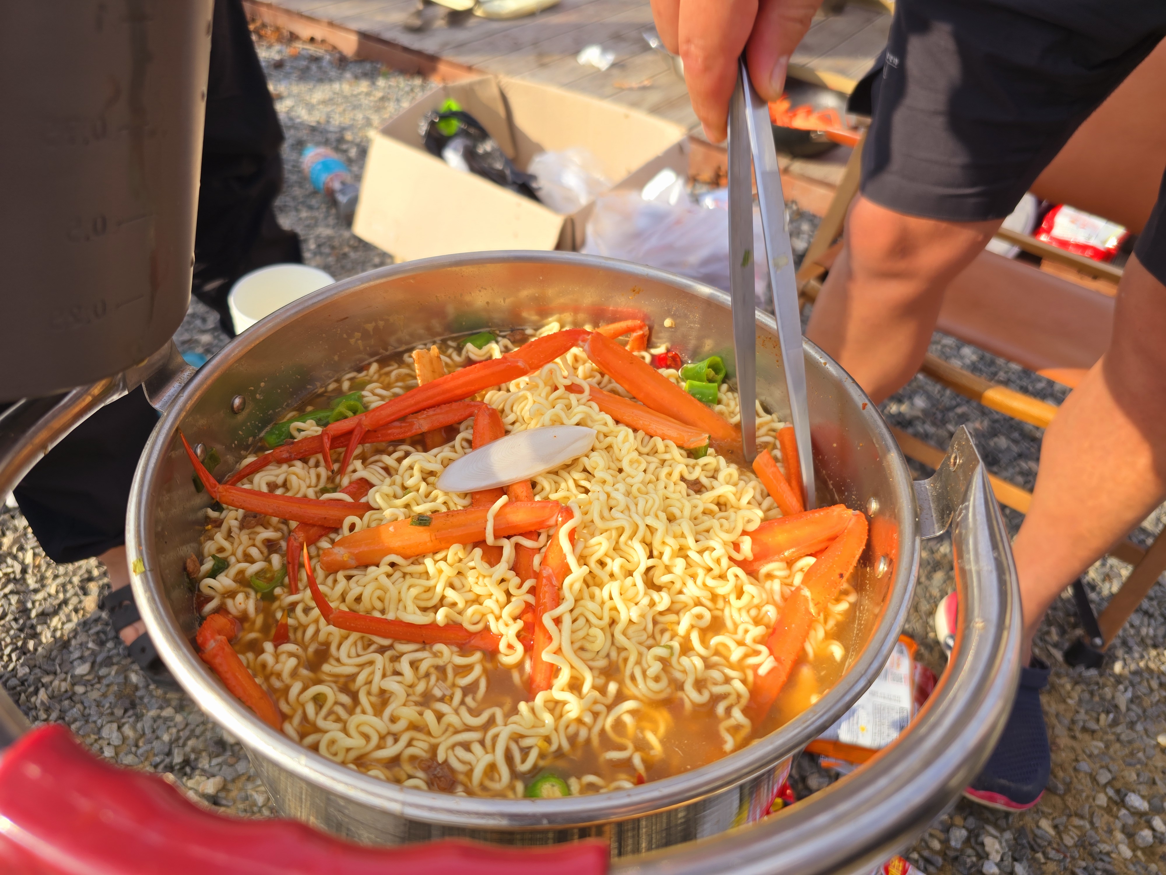 고기와 라면, 라면도 그냥 라면이 아닌 게가 들어가 있는 라면,