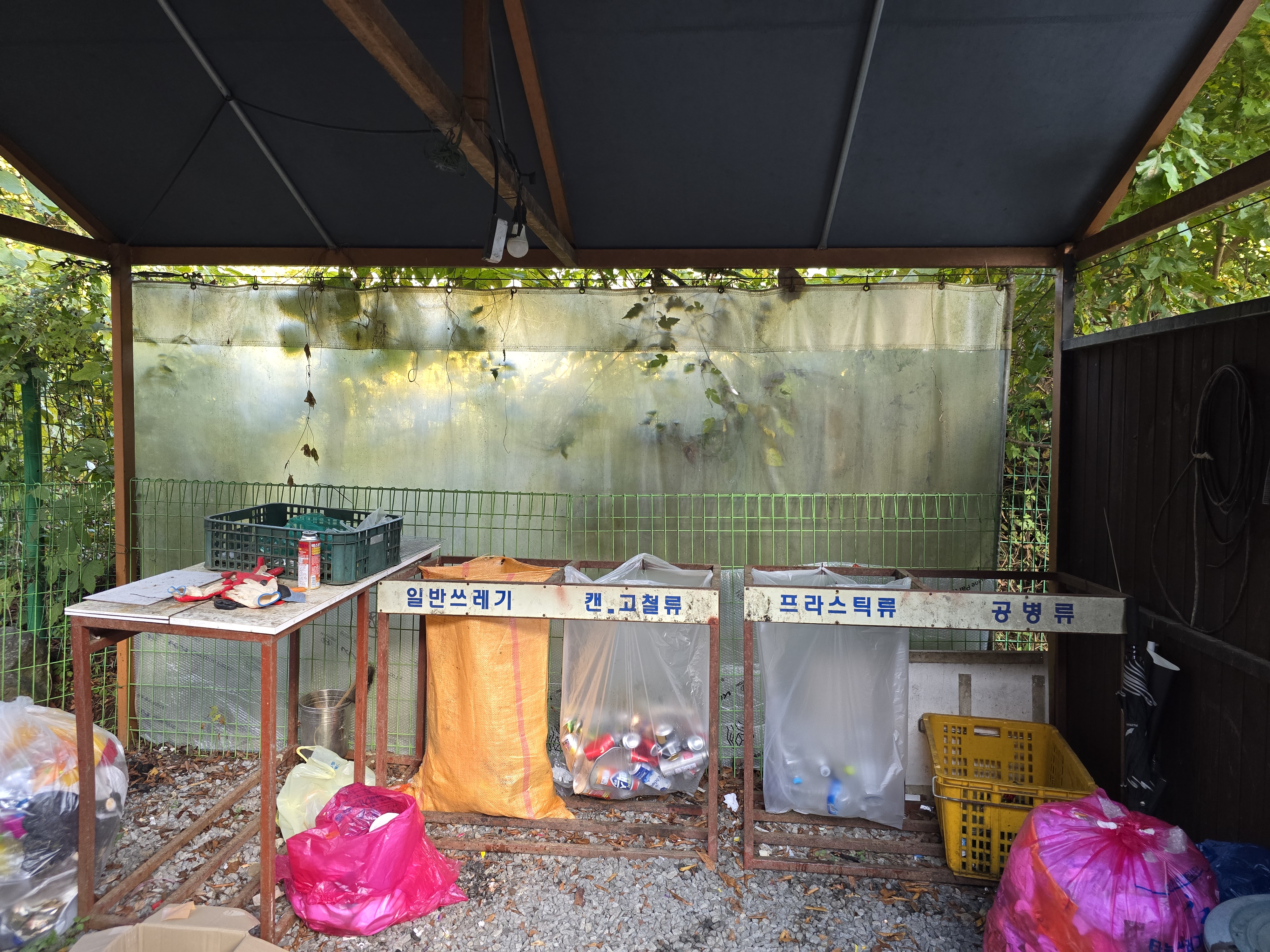사이트가 작다보니, 분리수거 , 화장실, 개수대 등이 한곳에 모여있었는데요.