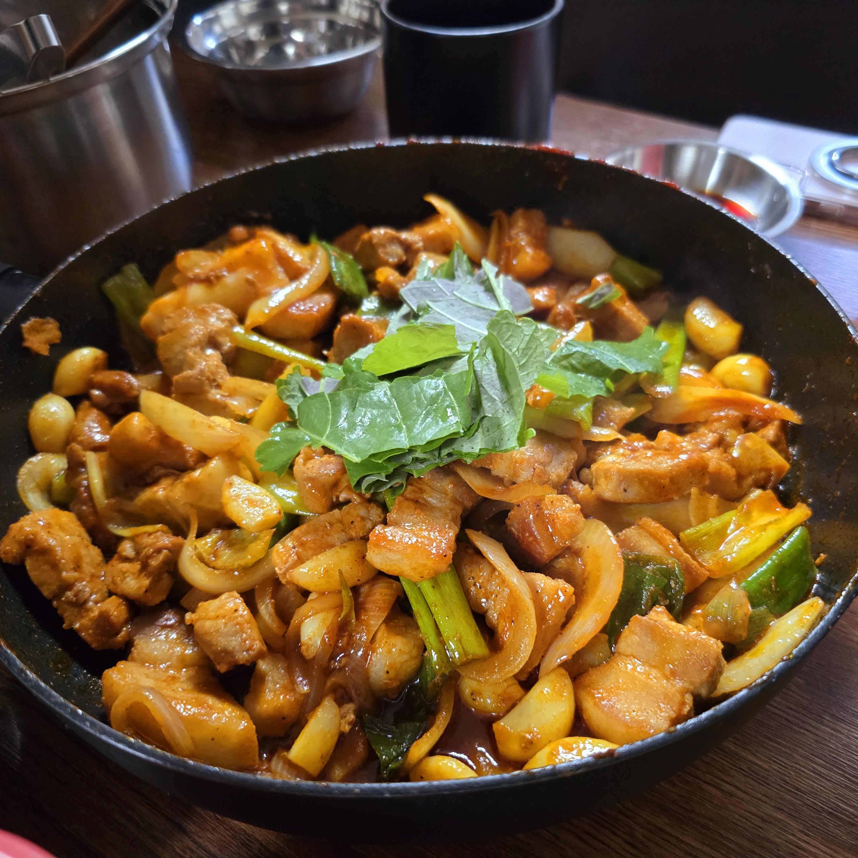 퇴근 후 가족과 함께하는 시간은 그야말로 힐링 그 자체였습니다. 텐트 안에서 딸내미 오얏과 함께 웃고 떠들며 고기를 구워 먹는 그 순간이 얼마나 행복했던지요! 고기뿐만 아니라 따뜻한 어묵탕, 비빔밥, 떡볶이, 그리고 칼국수까지 다채로운 음식을 만들어 먹으며 캠핑의 묘미를 만끽했습니다.