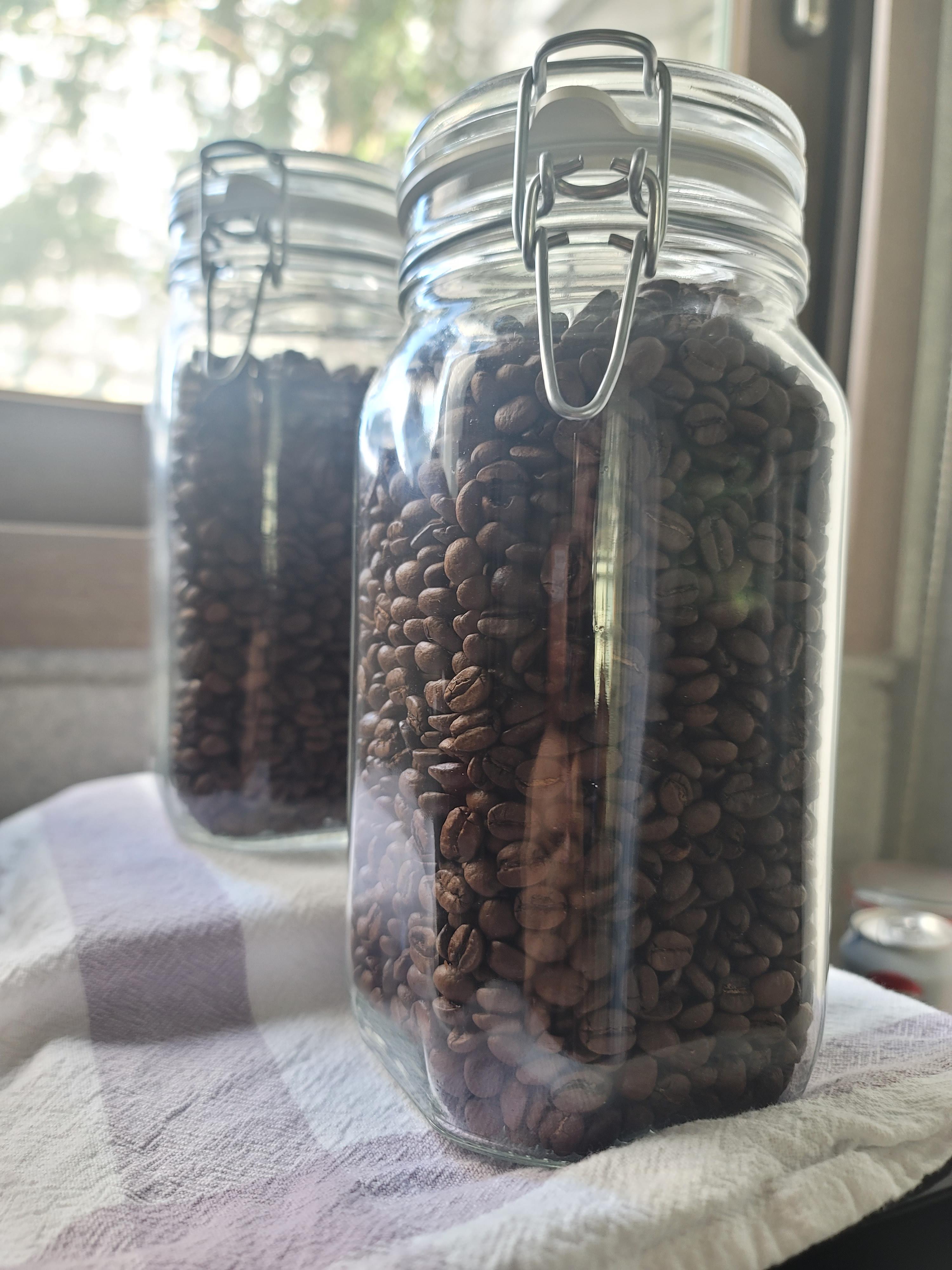 투명한 유리병 두개에 원두를 담아 두니, 디스플레이 하기에도 좋고, 집안 데코에도 좋고.. 같은 동의어인가... 요?ㅋㅋㅋ