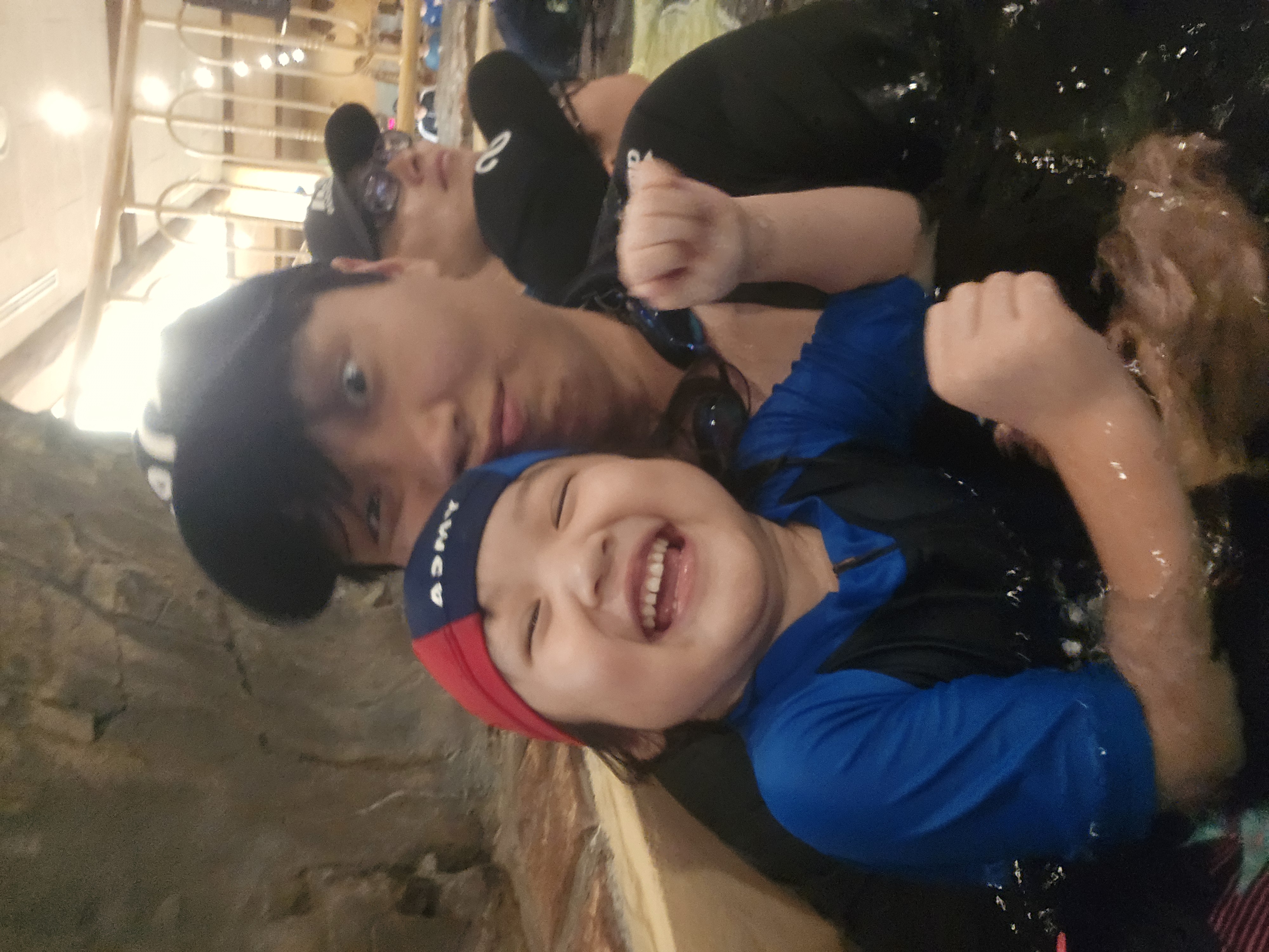 오얏맘은 아직 키가 작은 오얏이 곁을 지키느라 다이빙풀에는 들어오지 않았습니다. 아이와 함께 있으니 저 혼자 신나게 다이빙을 즐길 수 있었네요. 오얏이도 물속에서 아빠를 보며 환하게 웃으며 응원해주었어요.